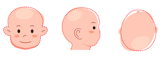 아기머리를 위에서 아래로 보았을 때 아기의 뒷머리 전체가 납작하며, 좌,우측 측면에서 보았을 때 정수리 상단으로 머리모양이 솟는 모양